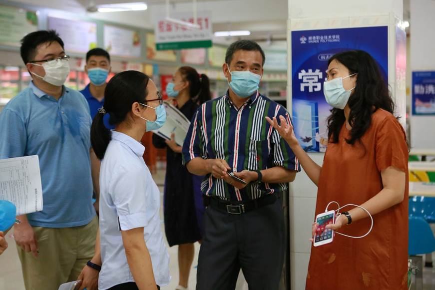 检查组一行查阅了学校返校相关工作制度方案,实地查看了校园环境卫生、医学观察隔离区、宿舍楼、教学楼、小医院等场所的防控保障条件,详细了解了学校疫情防控和开学返校工作开展情况。现场检查期间,学校相关人员详细汇报了相关工作的主要做法和体会,检查组对学校疫情防控和开学返校工作的实施细节提出了建议,并对学校高度重视疫情防控和开学后各项工作有序开展给予了充分肯定。