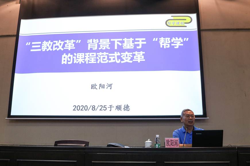 期间,湖南省教育科学研究院研究员欧阳河教授就当下职教热点做了《“三教改革”背景下基于“帮学”的课程范式变革》专题授课;华南师范大学粤港澳大湾区教育发展高等研究院院长、教育部长江学者特聘教授卢晓中讲授了《教师的身份认同及其提升路向》;华南师范大学教授、博士生导师、教学名师胡小勇就《未来已来,做新时代的好老师》进行专题授课。永利官网党委委员、党委宣传部部长汤恺就《永利欢乐娱人城办学历史与文化》进行了介绍;永利官网党委委员、组织人事处处长陈文海就《永利欢乐娱人城人事制度》进行了解读。