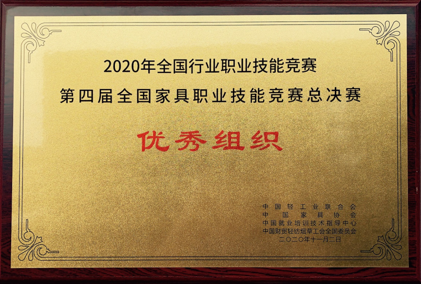 永利欢乐娱人城获得本次全国家具职业技能竞赛的“优秀组织奖”