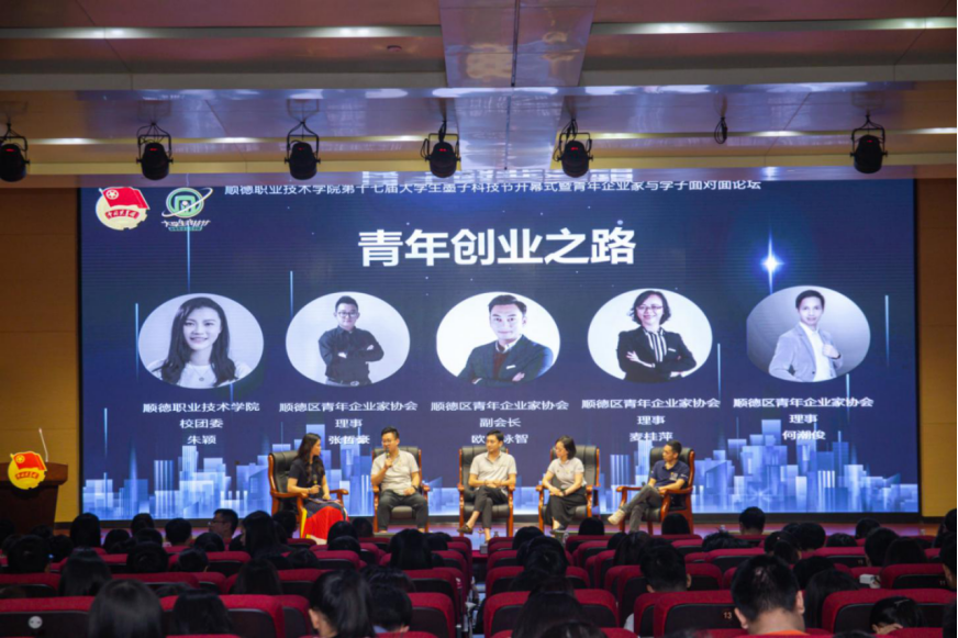 11月4日,永利官网在李佘少鸿楼六号报告厅举办了第十七届大学生墨子科技节开幕式暨青年企业家与学子面对面论坛。学校党委书记李先祥,共青团顺德区委副书记曾浩宇,顺德青年企业家(青商)协会副会长吴锦荣、欧阳咏智,学校党委宣传部、学生工作部、校团委、科技处、校友会基金会、顺大公司等部门负责人,各二级学院党总支书记、团委书记,以及来自顺德区青企协的青年企业家们和现场学生共约300人参加本次活动。