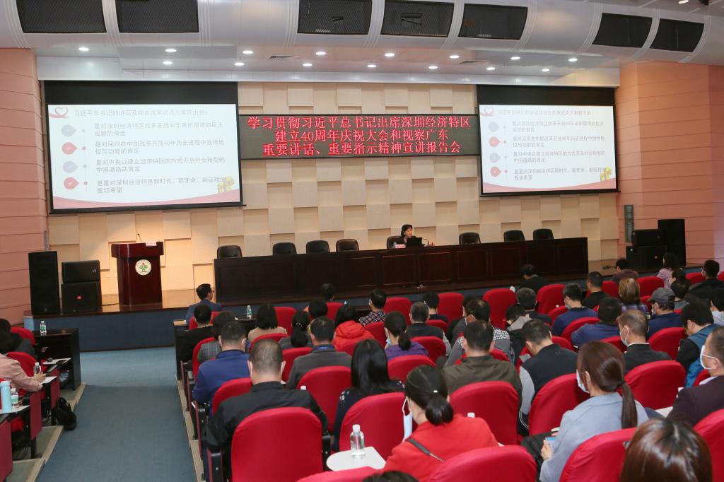 根据上级有关文件精神及工作要求,12月2日,永利官网在学术报告厅举行“学习贯彻习近平总书记出席深圳经济特区建立40周年庆祝大会和视察广东重要讲话、重要指示精神”宣讲报告会,邀请广东省委宣讲团成员、教育部人文社科重点研究基地——深圳大学中国经济特区研究中心主任陶一桃教授作“继续先行的思想力量与制度保障”专题辅导报告。学校党政领导班子成员,全体教职工参加了报告会。报告会由学校党委委员、宣传部长汤恺主持。