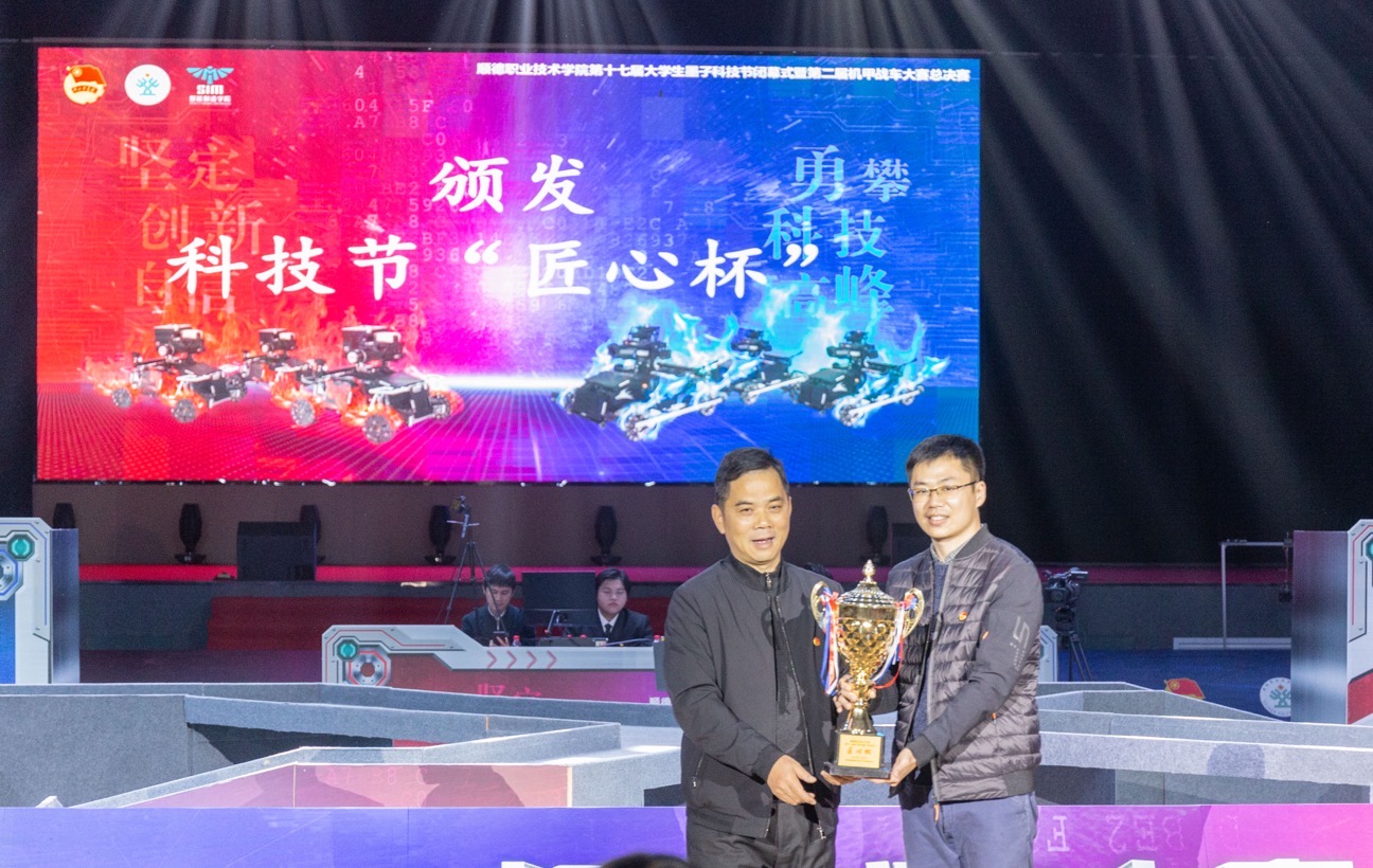 12月30日晚,第十七届大学生墨子科技节闭幕式暨第二届机甲战车大赛总决赛在永利官网梁銶琚堂隆重举行。学校党委副书记、副校长刘毓,党委委员、党委宣传部部长汤恺,学工部、校团委、顺大公司负责人,各二级学院党总支书记、团委书记,智能学院相关老师、顺德一中相关老师,现场师生共计430余人参与活动。
