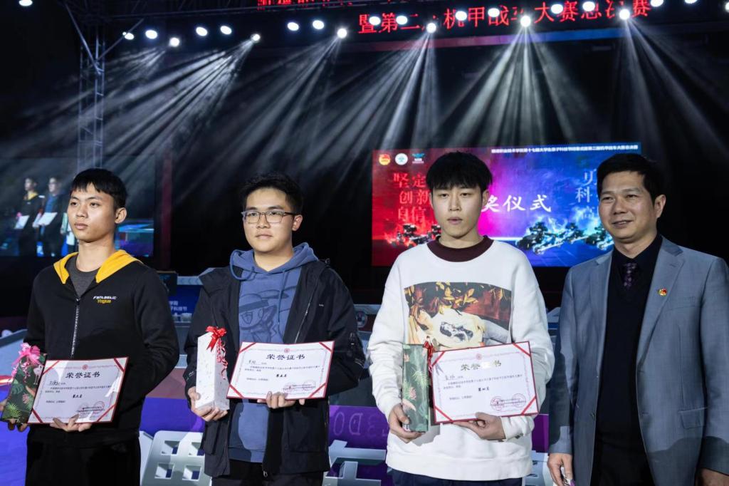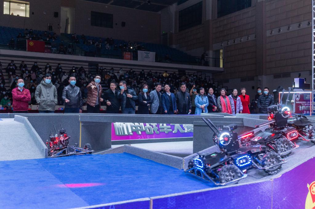 在活动现场,举行了第二届机甲战车大赛总决赛。机甲战车大赛是以学生团队为单位,使用自主制作、自主开发、自主调试的智能机器人参与分组对抗的比赛,为创新人才培养模式进行一场突破性的革命,在应用智能机器人技术的同时,着重培养学生的科技创新意识和创新能力。本次总决赛共有6支参赛队伍参与角逐,将所学知识运用在竞技赛场上,为团队荣誉而战。经过紧张又激烈的竞赛后,“进击小分队”战队脱颖而出,获得本次大赛的总冠军。本场赛事为观众们提供了一场科技竞技的视觉盛宴,培养了学生的工程理论知识与人工智能技术应用实践能力,提高了学生团队协作能力与责任意识。