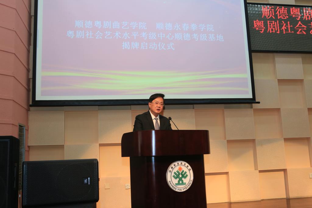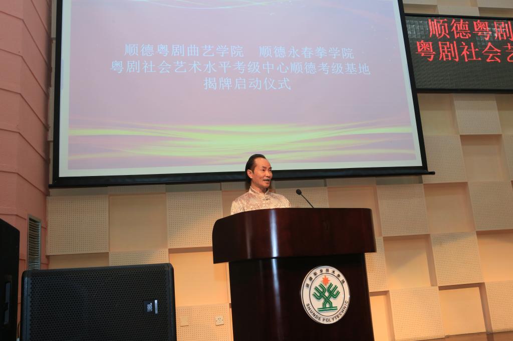 学校校长夏伟表示,学校在高职教育领域率先倡导推行文化素质教育,取得了明显的成效。作为扎根顺德大地的本土大学,学校有责任有义务担负起顺德地方特色传统文化的传承和创新,将举全校之力,齐心协力办好学院和基地,为持续推动校园文化高品位发展,助推顺德地方特色文化发扬光大,为培养高素质粤剧曲艺和武术人才贡献智慧和力量。