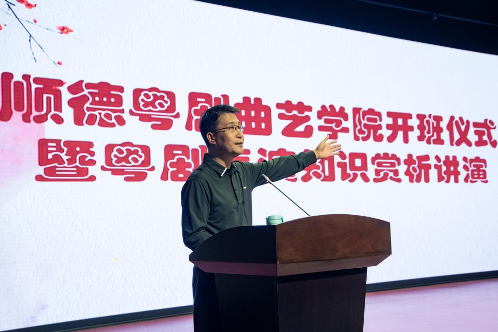 人文学院负责人在活动致辞中表示,顺德粤剧曲艺学院已于3月24日在永利官网挂牌成立,今天举行顺德粤剧曲艺学院开班仪式及粤剧赏析讲演活动,就是要在顺德大地传承和弘扬粤剧曲艺文化,提高粤剧曲艺人才培养水平,推动粤剧文化的大繁荣大发展。