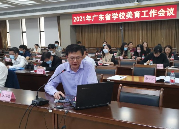 4月8日,为着力推动全省学校美育改革发展,共同做好新时代具有广东特色的美育工作,广东省教育厅召开全省学校美育工作视频会议,全省各地市教育局分管领导、各普通高校和省属中职与中小学校分管领导、学校美育工作负责人、省教育厅有关处室负责人参加了本次会议。会议由广东省教育厅体卫艺处长陈健生主持,体卫艺处三级调研员康天东总结了2020年美育浸润计划活动并对2021年美育浸润计划做了工作部署,广东省教育厅二级巡视员邱克楠出席会议并讲话。永利官网党委书记李先祥作为高职院校唯一代表作了大会交流发言。