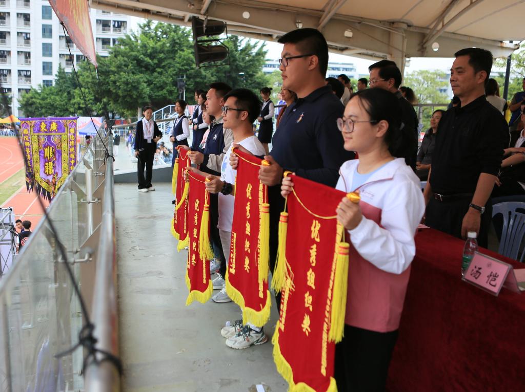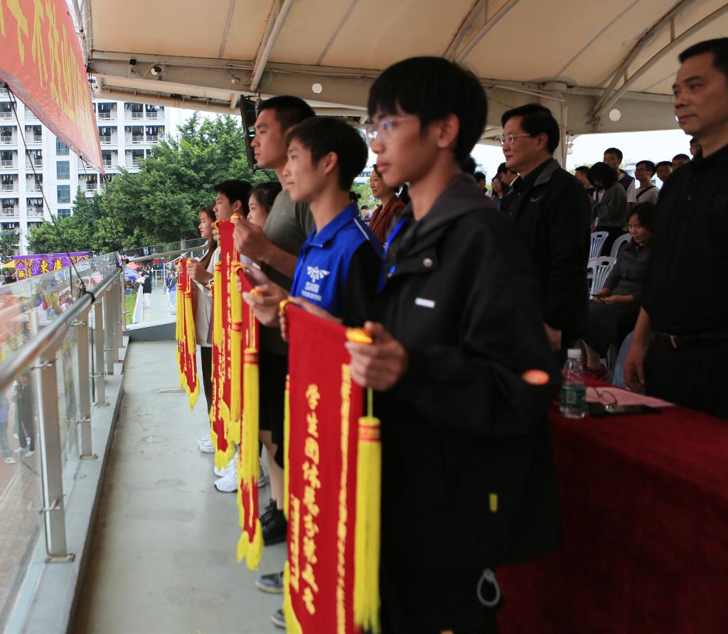 11月19日下午16时,本届运动会顺利完成各项预定比赛项目,圆满闭幕。运动会共产生32个单项冠军,1人打破校运会记录,评出6个优秀组织奖、6个精神文明奖、6个学生团体总分奖,商学院、智能制造学院、烹饪学院分获学生团体总分前三名。闭幕式上,学校领导为获奖代表队颁奖。