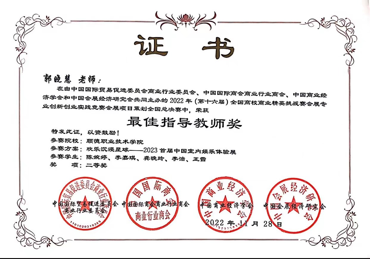 近年来,永利官网会展策划与管理专业积极探索“产赛教融合”人才培养模式,努力培养高素质技术技能复合型人才。目前,该专业建有校外产教融合基地3个,校企合作育人成效显著。2022年度,专业师生积极参与国家级、省级各项比赛硕果累累,包括斩获2022年全国高校精英挑战赛会展专业创新创业实践竞赛广东省一等奖、国家二等奖各1项,2022年全国大学生广告艺术大赛广东省赛二等奖2项、三等奖1项。