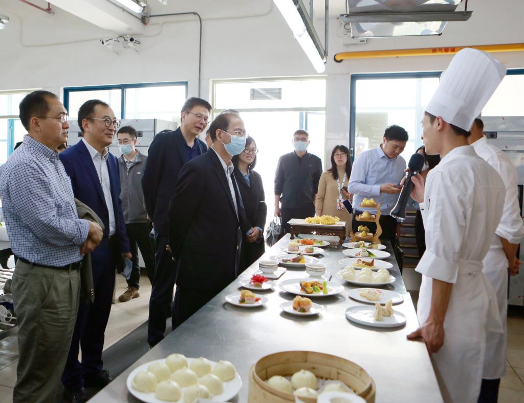 调研组参观考察了烹饪学院(顺德厨师学院)实训中心,详细了解永利官网深入实施“粤菜师傅”工程,以“一人学厨,全家幸福”为宗旨,探索“名校联名店,名店出名厨,名厨带名徒,名徒成名厨”模式,打造烹饪技能人才高地,深化东西协作,助力乡村振兴的做法和成效。