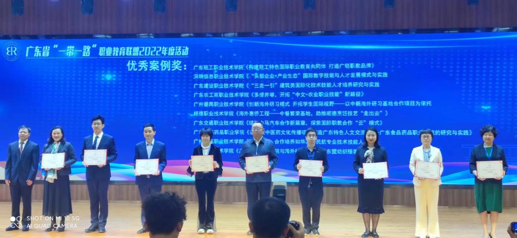 本次会议由广东省教育厅、广东省财政厅指导,广东省“一带一路”职业教育联盟主办,结合全省高职院校对外交流合作工作亮点,参考“一带一路”国际合作平台建设、境外办学、海外技能培训等领域的成绩,评选出10个优秀案例。