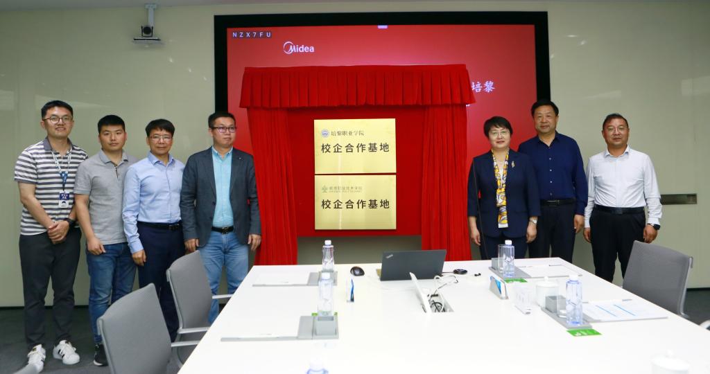 座谈会后,考察团前往美的集团调研交流,并为校企合作基地揭牌。