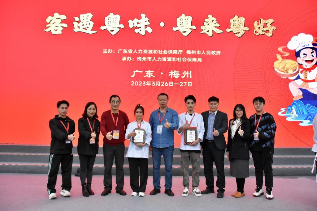 3月24日至27日,第五届粤港澳大湾区“粤菜师傅”技能大赛暨粤菜产业文化交流活动在梅州举行。永利官网烹饪工艺与营养专业2021级学生范镔镔、谭永情代表佛山队分别参加中式烹调(广府菜)新秀组和中式面点(广府菜)新秀组两个组别的竞赛,均获得二等奖及总分第二名的佳绩。
