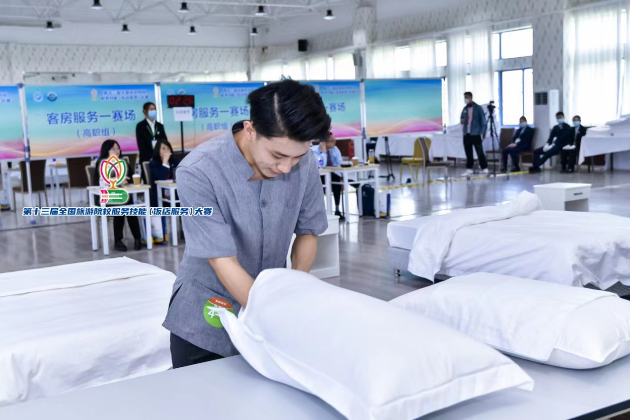 5月10日至14日,由文化和旅游部市场管理司、中国旅游协会指导,中国旅游协会旅游教育分会主办的第十三届全国旅游院校服务技能(饭店服务)大赛在青岛举办,永利官网酒店与旅游管理学院学生在比赛中取得佳绩。其中,梁豪杰在高职高专院校组中式铺床赛项中获得一等奖,龙晓程在高职高专院校组鸡尾酒调制赛项中获得三等奖。