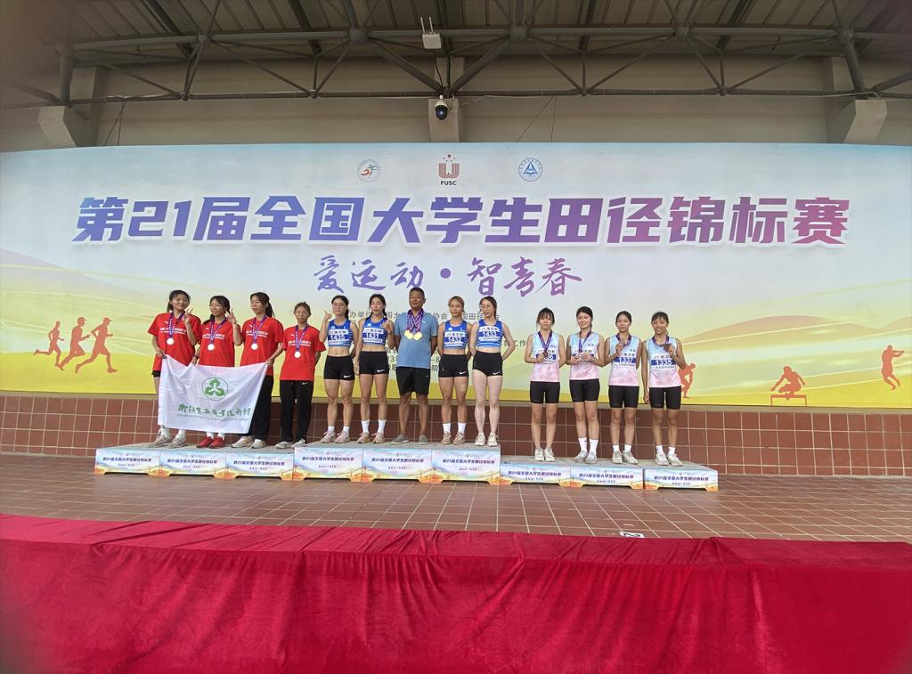 8月8日至16日,第二十一届全国大学生田径锦标赛在安徽职业技术学院举行。本届大赛共有394所高校共4800余名运动员参赛,参赛高校及人数均创历史新高。永利官网运动健儿在本次锦标赛中刷新学校女子100米、200米、4*100米、4*400米的纪录并斩获佳绩,其中女子4*400米获乙组亚军,4*100米获季军,最终女子团体总分获乙组第四名,代表团团体总分获乙组第五名。