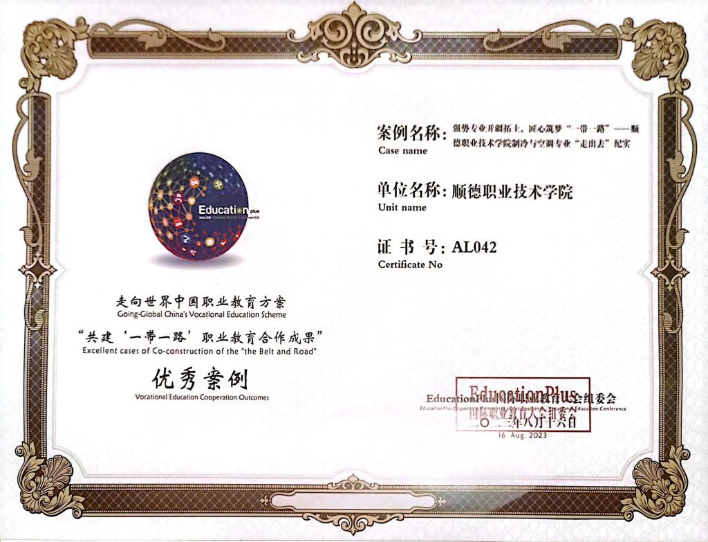 此外,学校能源与汽车工程学院国际化案例《“强势专业开疆拓土,匠心筑梦‘一带一路’——永利欢乐娱人城制冷与空调专业‘走出去’纪实”》被评为“走向世界中国职业教育方案——共建‘一带一路’职业教育合作成果”典型案例。同时,在本次大会的分会场“‘一带一路’国家职业标准共建学术研讨会”上,永利官网凭借轻化与材料学院国际职业标准共建项目,被授予“老挝国家职业标准共建项目示范建设单位”牌匾。基于永利官网服务“一带一路”建设的一系列成果,永利官网在本次大会上被评选为“2023年职业教育对外交流与合作典型院校”。