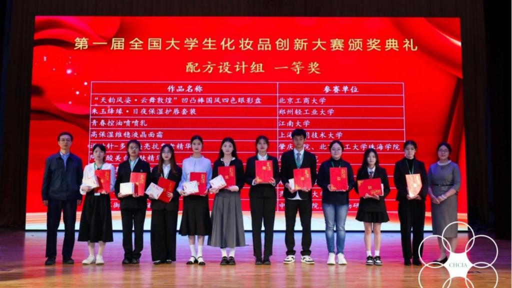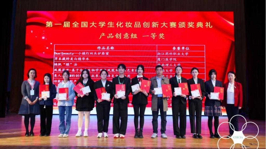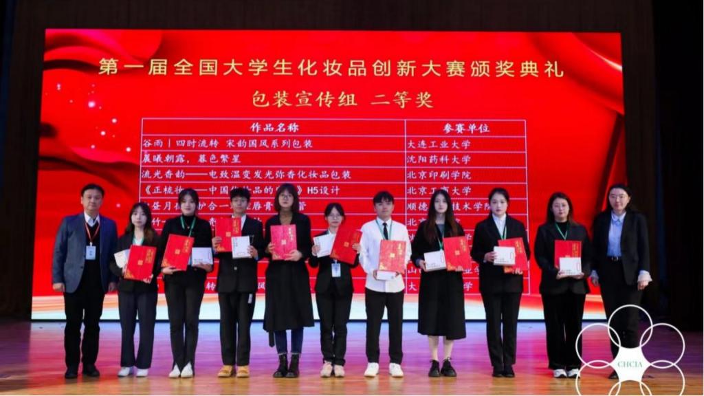 11月4日,由教育部高等学校轻工类专业教学指导委员会指导,中国日用化工协会主办,北京工商大学、化妆品学科建设与创新发展专业委员会承办的第一届全国大学生化妆品创新大赛圆满落幕。经过激烈比拼,永利官网轻化与材料学院3项作品获奖。其中,高南、彭琦、陈燕舞老师指导的作品《焕颜计划——抗衰提亮“小太阳”次抛精华液》获创意组一等奖(获奖学生:王易文、张澳康、林嘉宇、陆声广、胡思敏)、《聚柔蚕丝凝润妆护合一双腔唇膏》获配方设计组一等奖(获奖学生:张翠萍、张文海、何韵仪、曾子豪)、《白昼月夜妆护合一双腔唇膏包装管》获包装宣传组二等奖(获奖学生:何韵仪、张翠萍、张文海、曾子豪、张澳康)。永利官网一等奖获奖总数在全国高职院校中排名第一。