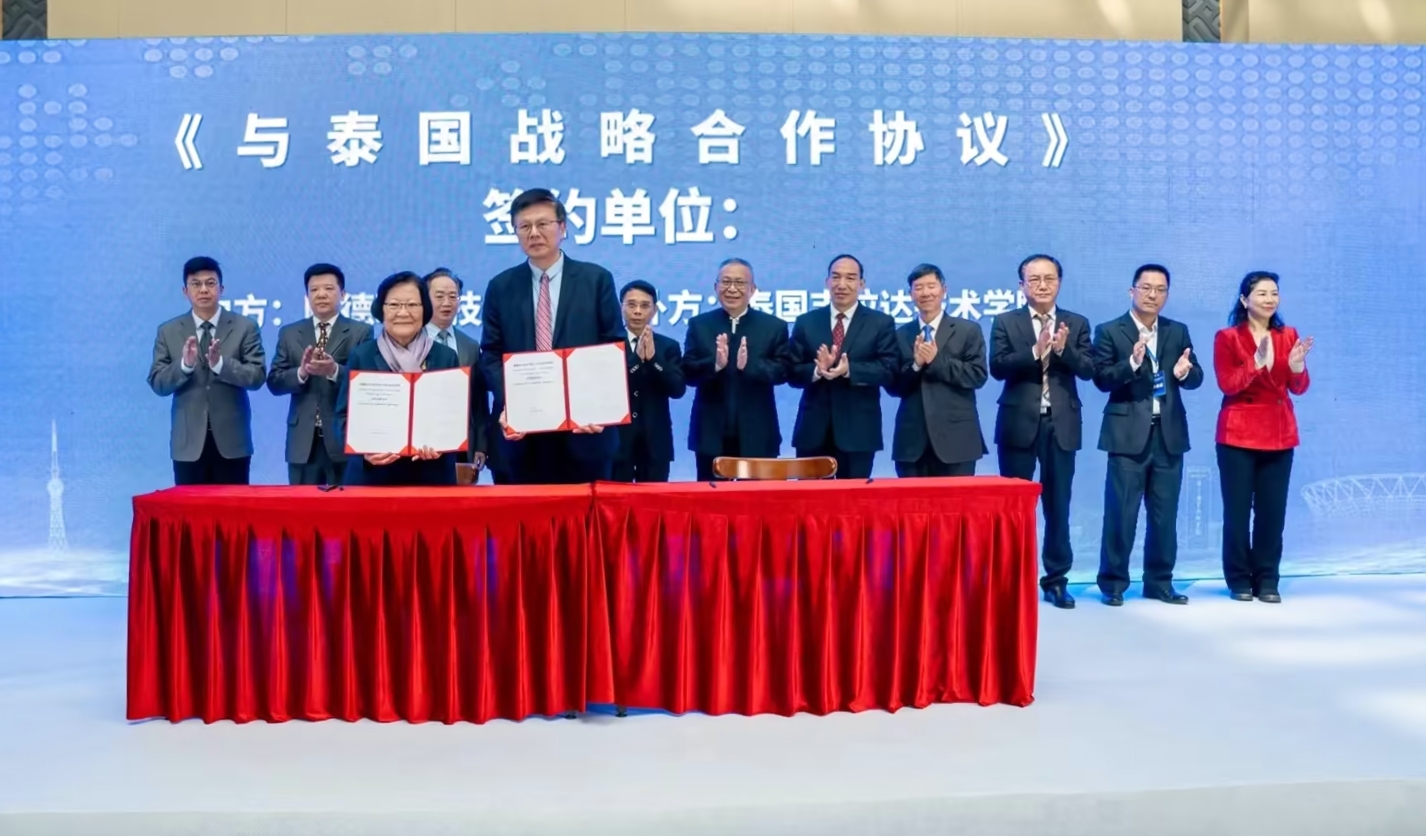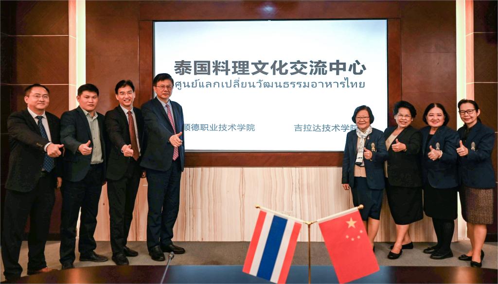 11月18日上午,两校代表召开国际合作洽谈会,并共同为泰国“粤菜师傅学院”、顺德“泰国料理文化交流中心”揭牌。