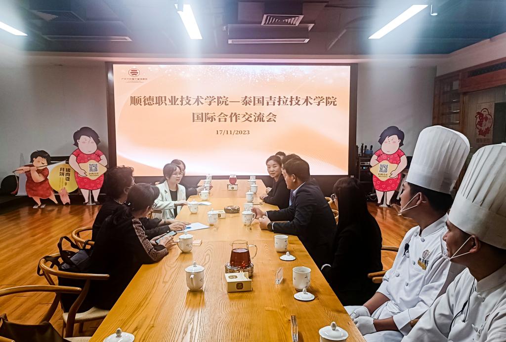 11月17日至18日,泰国吉拉达技术学院校长苏蒙塔,副校长桑塔尼,副校长、吉拉达职业学校主任努拉农,校长助理、科技与国际事务部主任布阿隆一行来到永利官网交流访问,与永利官网共同参加广东省“一带一路”职业教育联盟2023年度活动,并为两校合作共建的烹饪国际交流平台揭牌。学校党委书记李先祥,国际学院、烹饪学院负责人等参加活动。