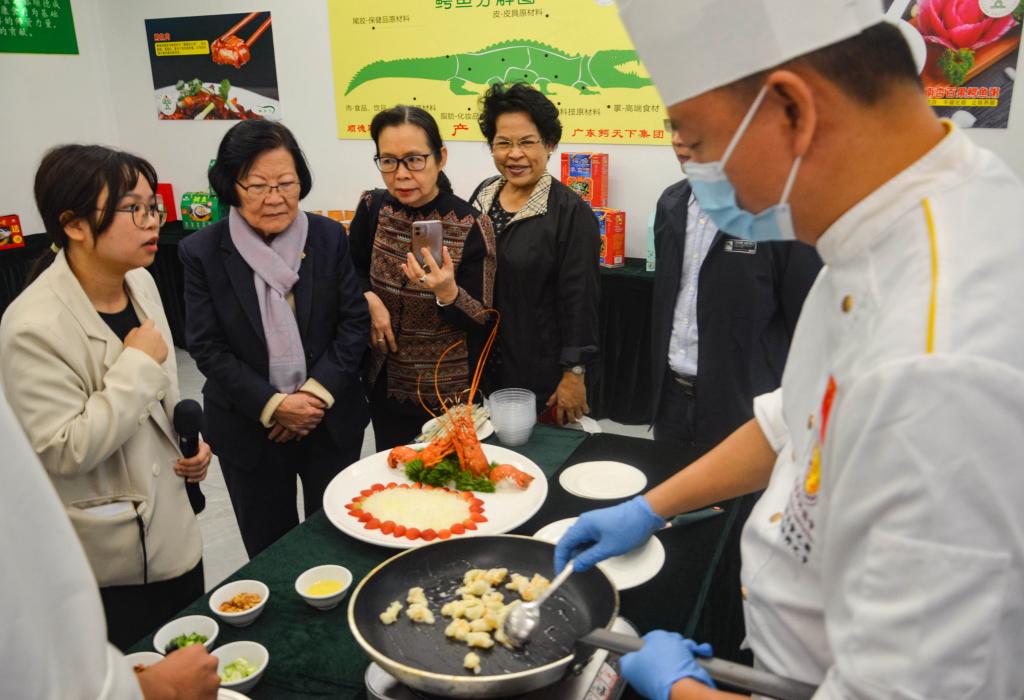 11月17日下午,苏蒙塔一行参观考察了永利官网烹饪学院实训中心,详细了解永利官网产教融合实训基地的运行模式、设施设备、师资队伍等情况,并与师生交流,高度评价永利官网办学成果。随后,苏蒙塔一行前往永利官网校外实训基地、人才培养基地——天悦餐饮集团考察,洽谈校企国际合作培养泰国粤菜技能人才方案,表示期待开展全方位产学研合作,充分发挥各方优势,培养国际技能人才。