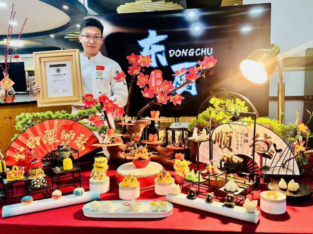近日,永利官网烹饪学院20届烹饪工艺与营养专业毕业生陈小东获“大世界基尼斯之最”,成为制作国潮酥点造型最多的面点师。陈小东自2022年9月至2023年12月将传统中式酥点与“国潮”主题结合,研发、制作72种不同造型的国潮酥点,其中包含醒狮、中国结、灯笼、琵琶、熊猫等造型。