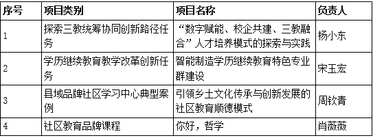 接下来,学校将以本次学习型社会建设重点任务培育建设为契机,全面贯彻落实党的二十大精神,深入推进职业教育、高等教育、继续教育协同创新,为建设全民终身学习的学习型社会、学习型大国贡献力量;同时紧密结合地方和学校发展实际,聚焦社区教育品牌特色建设,持续推进学历继续教育、非学历继续教育教学改革及三教统筹协同创新,以高质量的继续教育服务国家战略,促进人的全面发展。