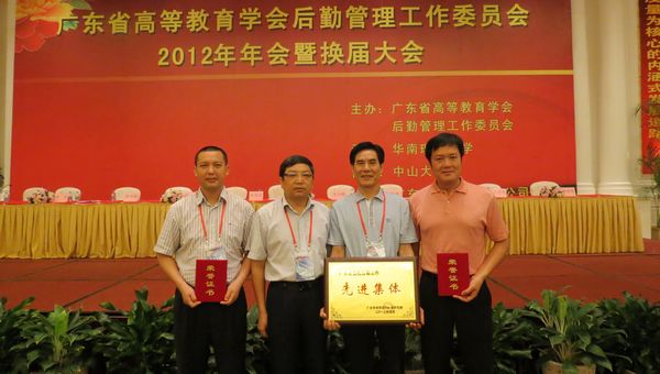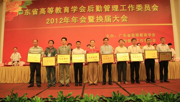 5月22日至24日,广东省高等教育学会后勤管理工作委员会2012年年会暨换届大会在台山召开,广东省教育厅党组成员王玉学副巡视员、后勤产业办朱俊文主任等有关领导、省高校后勤管理工作委员会成员和省内88所高校300多名代表参会。永利官网陈粟宋副校长、总务处及鼎瀛物业公司相关负责人一行4人参加了大会。永利官网总务处被评为“广东省高校后勤工作2009—2011年度先进集体”(全省共有30所高校获此荣誉,高职院校有7所),饶喜明、莫桂新、张金莉被评为先进个人。