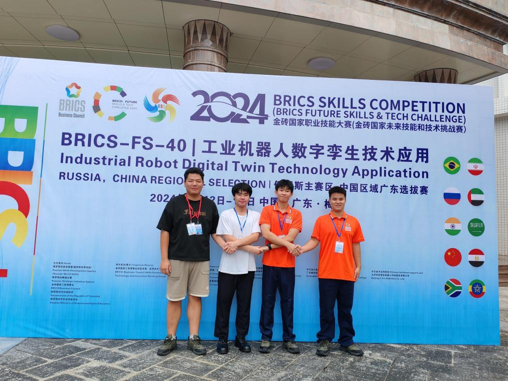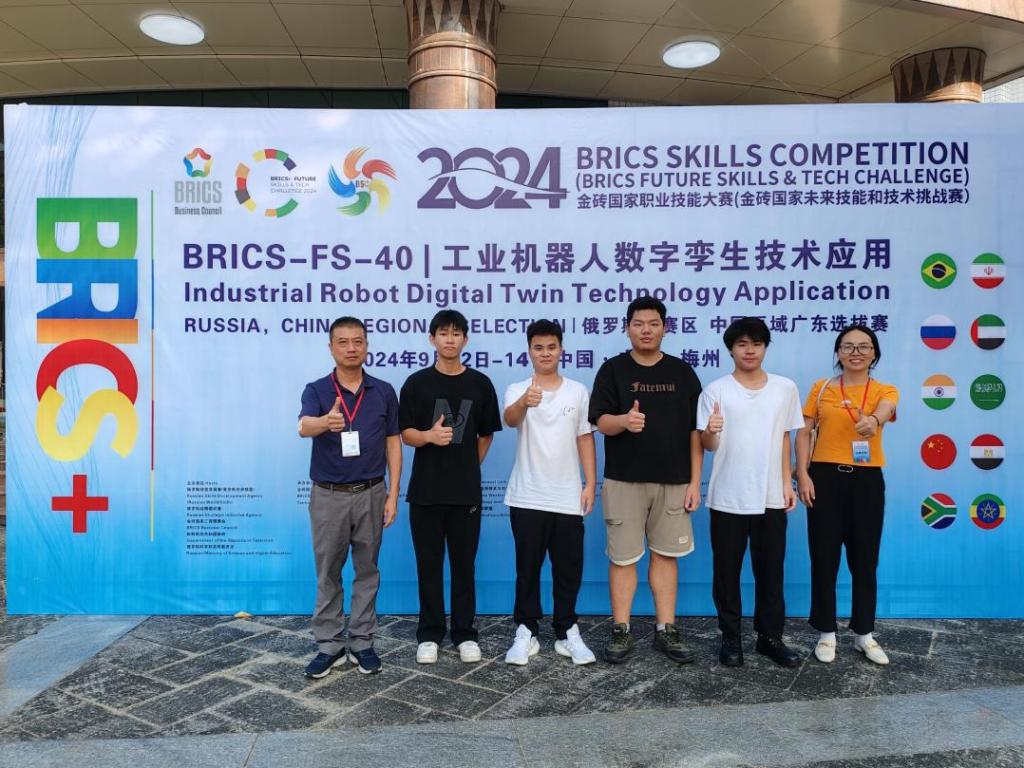 9月12日至14日,2024金砖国家职业技能大赛(金砖国家未来技能和技术挑战赛)工业机器人数字孪生技术应用(广东赛区选拔赛)在广东梅州职业技术学院举办。本次比赛共42支代表队参赛,经过一天的激烈角逐,永利官网智能制造学院教师万向、罗建成指导的由工业机器人专业学生彭影钟、胡鸿辉组成的代表队以总分并列第一名的的优异成绩获省赛一等奖,成功入围国际赛,同时这两位老师指导的由工业机器人专业学生杨鑫涌、黄子楠组成的另一支代表队获省赛二等奖。