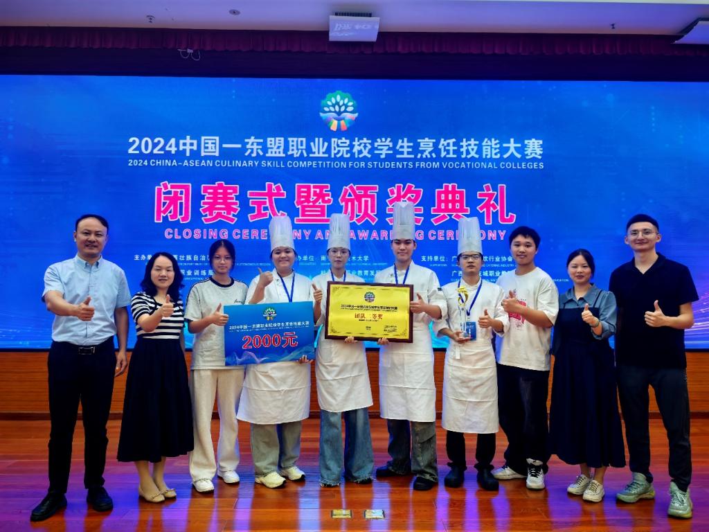 10月29日至31日,由广西壮族自治区教育厅和香港职业训练局联合主办,南宁职业技术大学和桂港现代职业教育发展中心承办的2024中国—东盟职业院校学生烹饪技能大赛在南宁举办,来自中国和东盟国家22所本科和高职院校的137名选手同台竞技。永利官网由烹饪学院4名学生(江伟朝、刘雅文、叶知秋、梁晓怡)组成的代表队获得团体二等奖、最佳台面设计奖,西式烹调赛项一等奖、食品雕刻赛项二等奖、创新面点赛项三等奖,烹饪学院教师鲍亦璐获优秀指导教师称号。