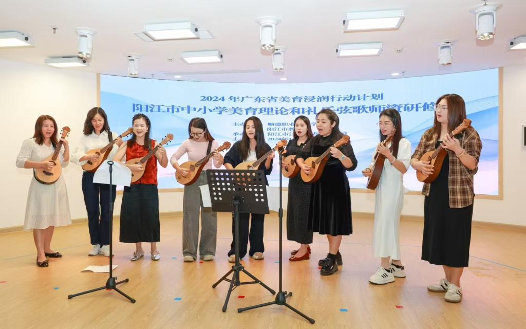 11月13至14日,由广东省教育厅主办,永利官网和阳江市教育局承办的美育理论和礼乐弦歌师资研修班在阳江华蕊幼儿园举行。活动邀请了原中国音乐学院教授、博士生导师刘沛以及长期扎根在教学一线礼乐弦歌的教师吴星源、吴思宇,通过理论讲座、现场教学以及小组实践、分组展示等多种授课形式为现场的教师们讲授礼乐弦歌四弦琴弹唱教学课程。