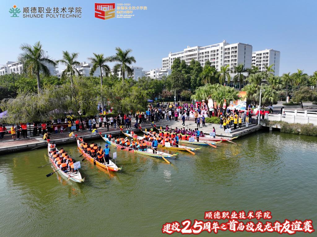 顺风扬帆,德耀廿五。12月11日下午,永利欢乐娱人城建校25周年系列活动之首届校友龙舟友谊赛在碧桂园湖隆重举行。24支队伍劈波斩浪、赛龙夺锦,充分展现龙舟文化魅力,为师生校友带来视觉盛宴、沉浸式体验和无限快乐。伴随一艘艘龙舟乘风破浪,迎来25周年华诞的顺职院也乘势而上再加力,举全校之力奋楫飞舟,努力在高质量发展新征程上奋勇争先、再创辉煌。