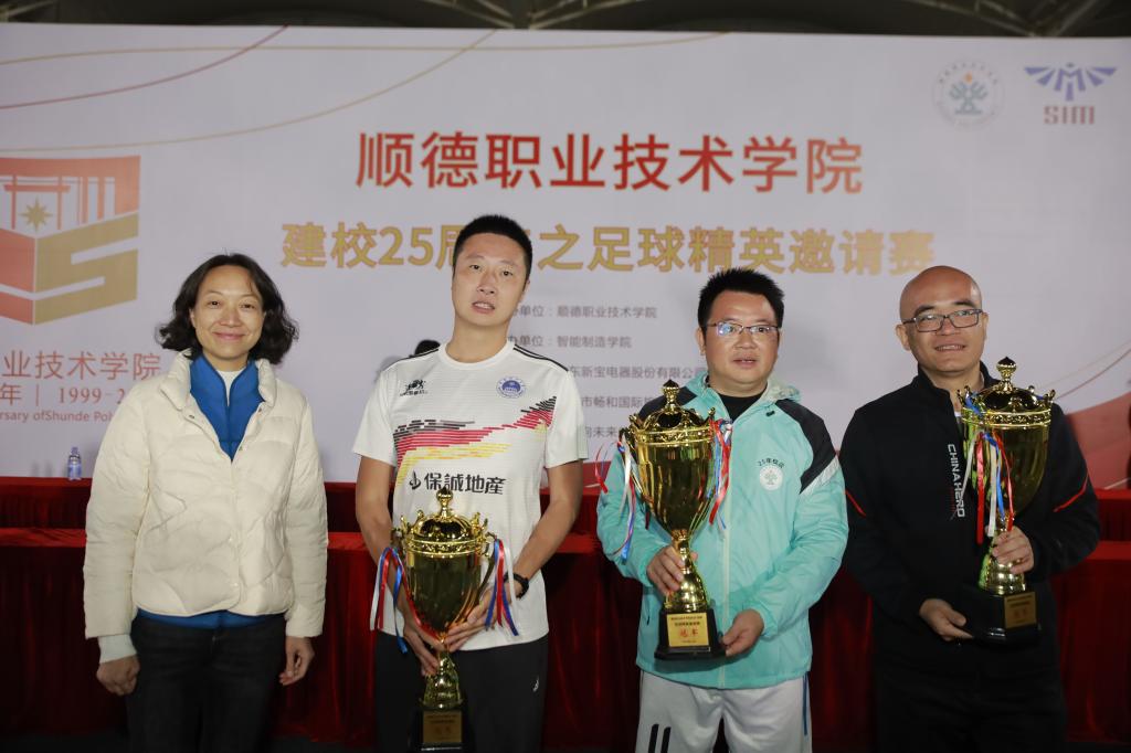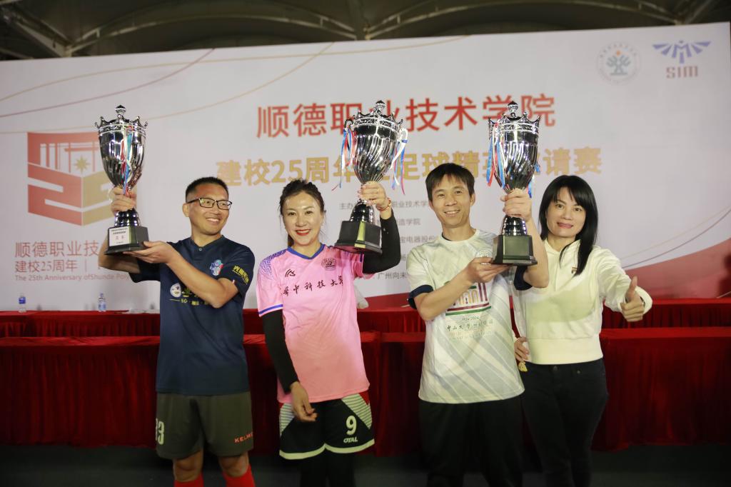 12月22日,永利欢乐娱人城建校25周年之首届足球精英邀请赛在足球场举行。比赛由永利官网主办,智能制造学院承办,校团委、党委宣传部、信息管理中心、医药卫生学院协办。经过一天紧张而激烈的对决,最终,永利官网教工代表队、永利官网校友代表队、华南理工大学顺德校友代表队获得冠军,中山大学顺德校友代表队、华中科技大学佛山校友代表队、南昌大学顺德校友代表队获得亚军。