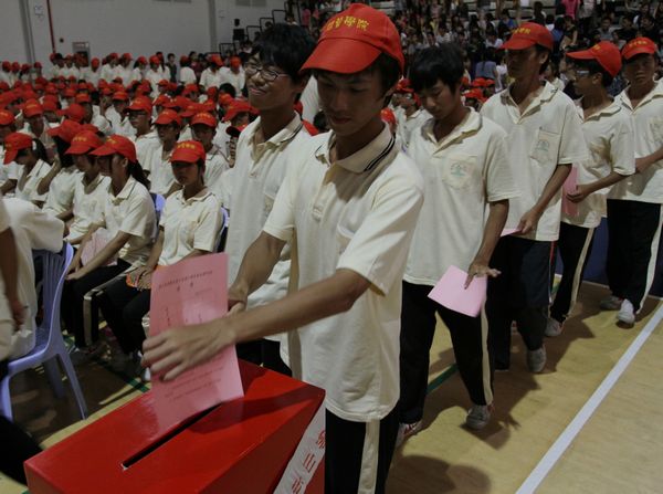 9月28日,永利官网在学术报告厅一楼、二楼、梁銶琚堂、教学楼隆重举行佛山市顺德区第十五届人大选举永利欢乐娱人城选区选举大会。学校领导夏伟、陈智、何锐连、邹时智、罗勇武、刘毓、徐刚和全体选民参加了本次大会。夏伟校长宣读了《关于委托选区投票选举主持人的通知(顺选[2011]10号)佛山市顺德区选举委员会文件》,宣布学校党委副书记何锐连为本选区投票选举主持人。永利官网共有选民11183人,参选人数10501人(其中304人委托投票),参选率93.9%。经过慎重选择后,选民们庄严地投出了自己神圣的选票。