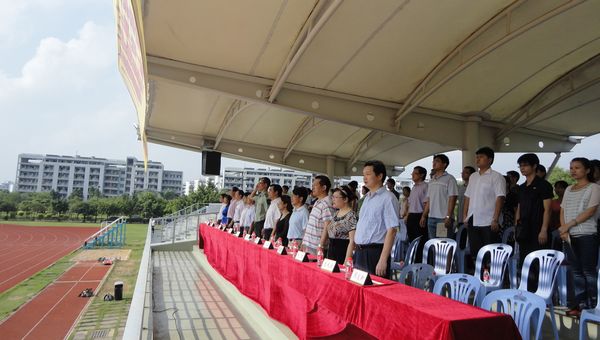 大会在雄壮的国歌声中拉开帷幕,学校纪委书记谭谦章在会上做了动员讲话。他首先代表学校和全体师生,向承训单位和全体参训教官表示衷心的感谢和崇高的敬意!向全体新同学表示热烈的欢迎和亲切的问候!并提几点要求和希望:第一,希望全体参训学生以饱满的热情投入到军训中去,严格要求自己,遵守军训纪律,维护军训秩序,听从指挥,服从命令,不怕困难,刻苦训练,认真完成规定的训练项目。第二,希望带队老师要高度重视新生军训,全力营造良好的军训环境,使大家以饱满的精神风貌投入到学生军训中。第三,希望各位教官认真履行职责,对参训同学严格要求、严格管理、严格训练,以良好的军人形象示范同学。第四,军训期间要特别注意安全问题,全体参训人员包括教官和学生都要严格按照操作规则要求,确保军训安全有序的进行。