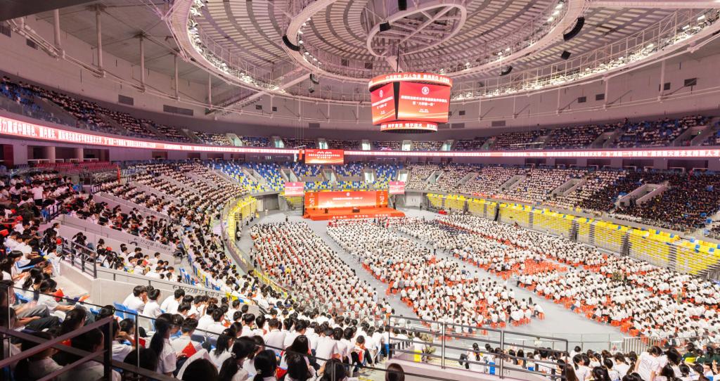 9月28日上午,顺德职业技术大学首届新生开学典礼暨“大学第一课”在德胜体育中心体育馆举行,佛山市委常委、顺德区委书记陈新文围绕深入学习贯彻习近平总书记关于教育的重要论述和全国教育大会精神,以“扎根沃土,匠心筑梦,在时代浪潮中谱写青春华章”为主题,为全体新生讲授“大学第一课”。