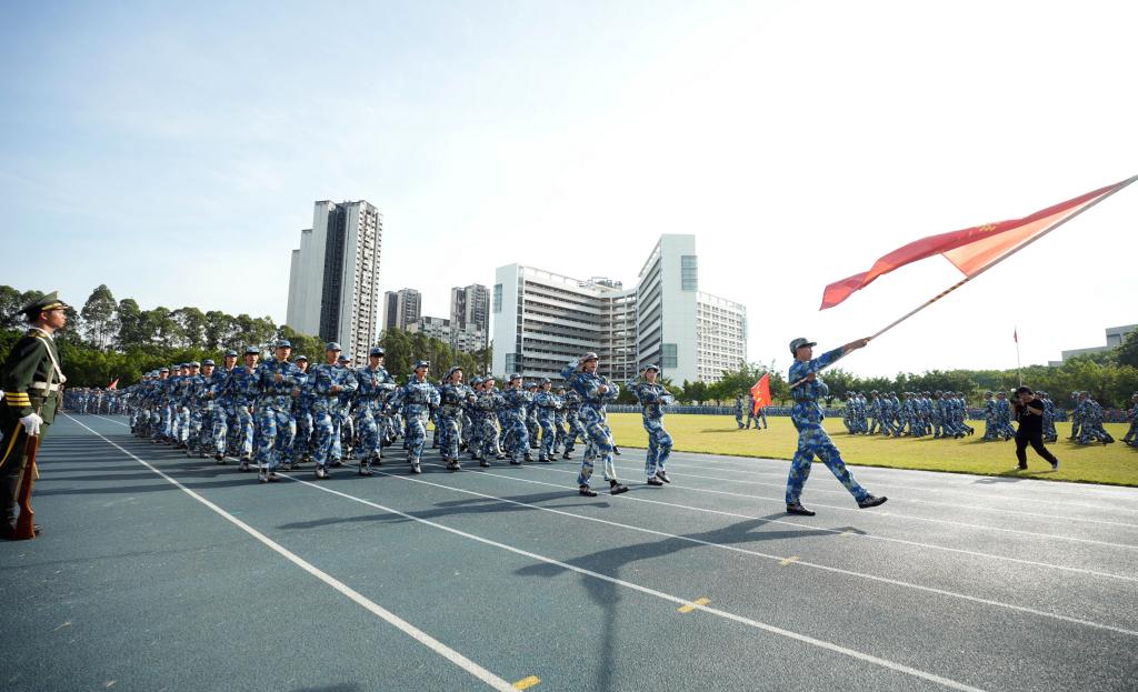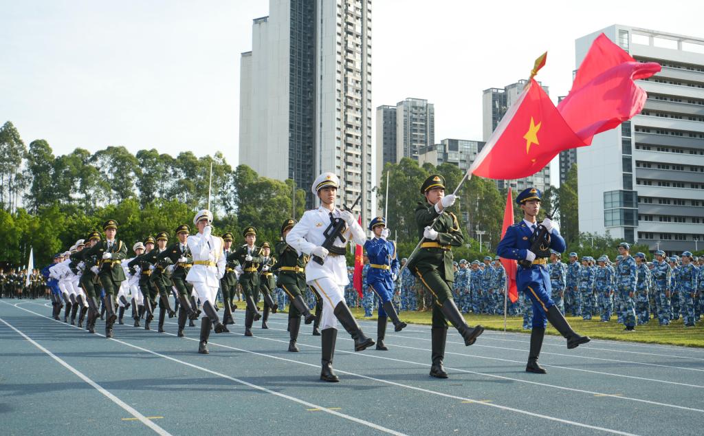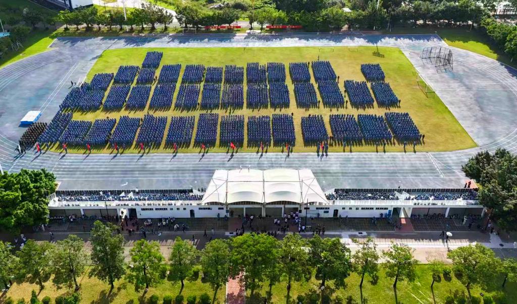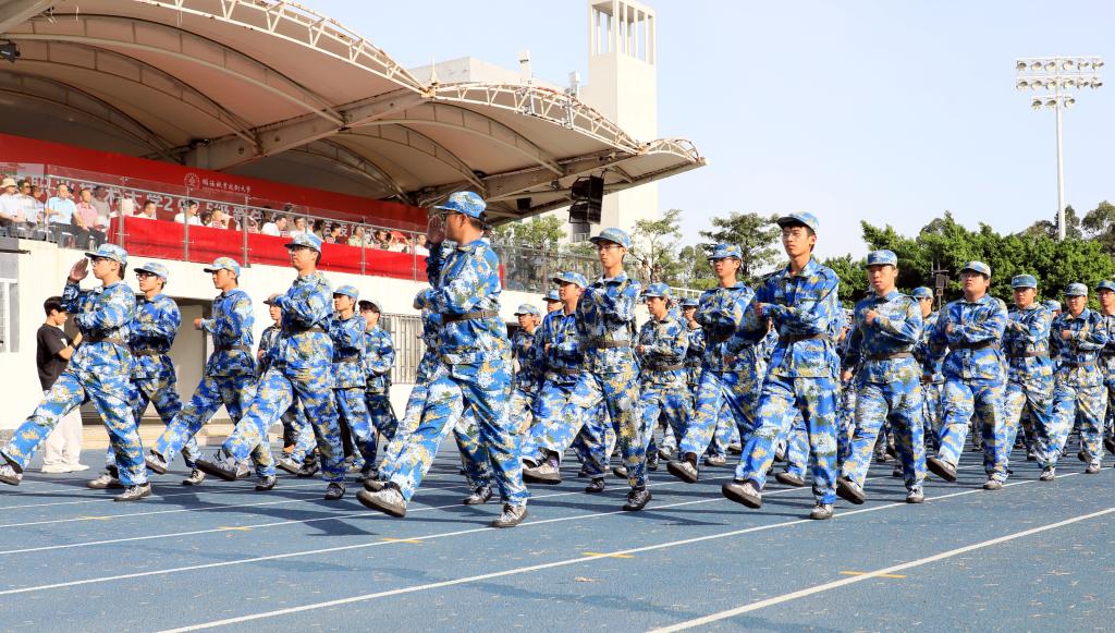 随后,分列式开始,仪仗方队、本科生方队、各二级学院方队依次通过主席台前接受检阅。同学们精神饱满、步伐整齐、口号嘹亮,充分展示了军训期间的训练成果和顽强拼搏的青春风采。