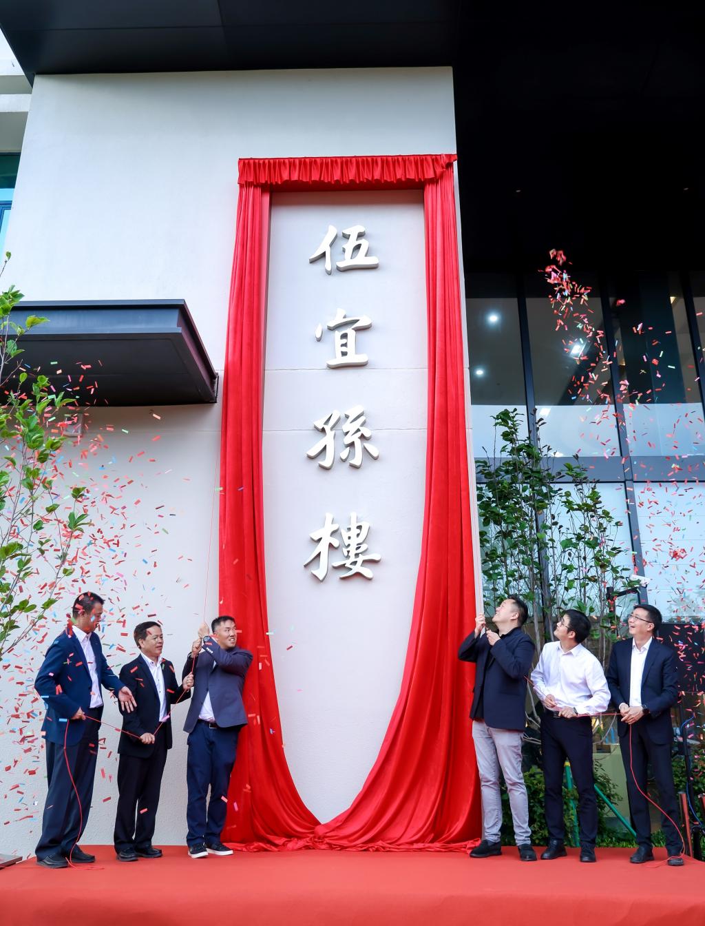 在热烈的掌声中,嘉宾们共同为伍宜孙楼揭幕,标志着这座凝聚着慈善力量与教育理想的建筑正式落成启用。