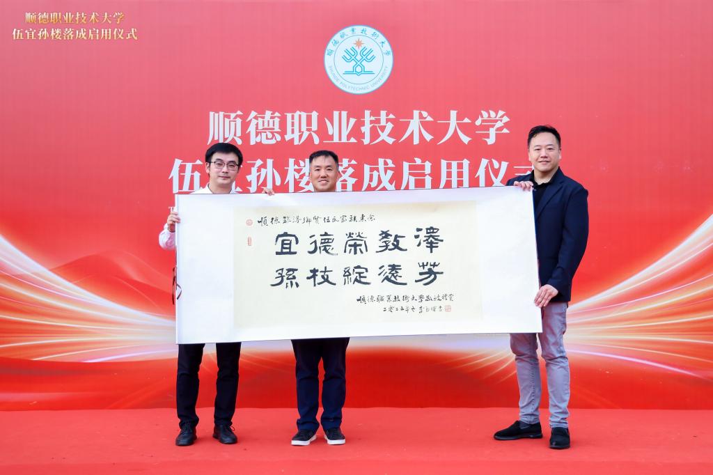 11月8日下午,顺德职业技术大学伍宜孙楼落成启用仪式举行。伍氏家族第三代代表、伍氏家族投资办公室合伙人、伍宜孙慈善基金会董事及律师伍尚宗,伍氏家族投资办公室合伙人、墨尔文国际学校集团亚洲区联席创办人、伍宜孙慈善基金会董事伍尚修;佛山市顺德区委常委、统战部部长梁伟沛,顺德区委统战部常务副部长区植朋,顺德区侨联主席吴蔚;学校党委书记卢清华,有关职能部门、二级学院负责人,师生及校友代表等参加活动,共同见证伍宜孙楼正式落成启用。