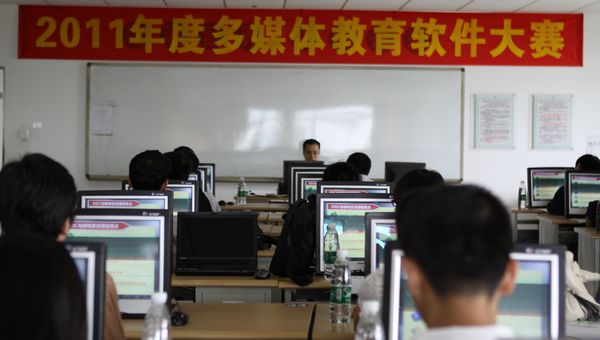 6月16日下午,教务处、信息管理中心和工会联合在信息中心603、605室举行了多媒体教育软件大赛总决赛。决赛邀请了罗勇武副校长、陈粟宋副校长等14位专家担任评委。决赛采用参赛者现场演示、专家提问等程序进行。经过评审,设计学院李蓟宁老师的《电视频道的包装系统》等15件作品分别获得多媒体课件一、二、三等奖;经济管理学院董翠玲等5位老师的《国际货物运输与保险》等6作品分别获得网络课程一、二、三等奖;电子与信息工程系李强老师设计的《“计算机应用基础”课程考试系统》等3个作品分别获得教育教学工具类软件系统一、二等奖。同时,评出电子与信息工程系、经济管理学院为优秀组织奖。根据大赛方案,大赛组委会还将推荐部分优秀作品参加2011年广东省计算机教育软件评审活动和第十五届全国多媒体教育软件大奖赛。