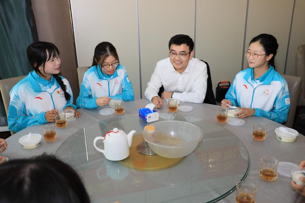 卢清华仔细询问大家的服务经历和收获感悟,对同学们展现出的专业素养、奉献精神给予充分肯定。他表示,同学们满载着全校师生的殷切期望,在各自岗位上辛勤付出,保障了赛事顺利举办,展现了顺职大学子的青春风采、使命担当,为学校赢得了声誉,学校为你们骄傲、以你们为荣、给你们点赞!希望大家好好休整、养精蓄锐,继续以饱满热情投入残特奥会服务,并将参与赛会志愿服务的亲身经历和感受讲给身边同学,争当志愿精神的传播者、践行者。有关部门要继续做好服务保障,创新育人模式,深化校企合作,教育引导学生在服务国家、奉献社会中锤炼本领、成长成才。