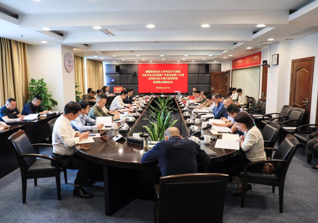 会议强调,学习宣传贯彻习近平总书记视察广东和出席第十五届全国运动会开幕式重要讲话重要指示精神,是当前和今后一个时期的重要政治任务。全校各级党组织、各部门要深刻认识其重大意义,提高政治站位,加强组织领导,科学部署安排,认真抓好学习培训和宣传宣讲,迅速掀起学习宣传贯彻热潮。要准确把握核心要义,将学习贯彻习近平总书记重要讲话重要指示精神与学习贯彻党的二十届四中全会精神结合起来,深刻领会习近平总书记关于以全面深化改革开放推动高质量发展、久久为功推动粤港澳大湾区建设的重要要求,高站位、大格局、高标准做好学校“十五五”规划。要不折不扣抓好落实,深刻领会习近平总书记关于加强党的领导、推进全面从严治党的重要要求,加强干部队伍建设和党风廉政建设,以高质量党建护航学校高质量发展;要认真落实习近平总书记关于加强红色教育和推进乡村全面振兴的重要指示,加强党史宣传教育,引导广大青年学生传承红色基因、赓续红色血脉,落实好立德树人根本任务;要结合东西部协作和“双百行动”,做好对口地区特别是革命老区的帮扶支持工作。要紧盯全年目标任务,统筹好发展与安全,毫不松懈抓好校园安全工作。要全力做好全运会期间的志愿服务和后勤保障工作,展示顺职大人的责任担当和良好风貌。