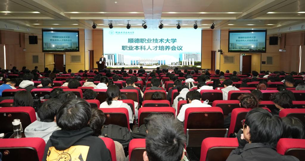11月19日下午,顺德职业技术大学职业本科人才培养会议在6号报告厅召开,统一思想、凝聚共识、明确路径,系统部署职业本科人才培养工作,助力学校职业本科建设稳步推进,为全体本科生注入成长动力和发展信心。学校党政领导班子成员,相关职能部门、各二级学院负责人,全体教学督导、本科专业负责人、课程主讲教师,全体2025级本科生参加会议。