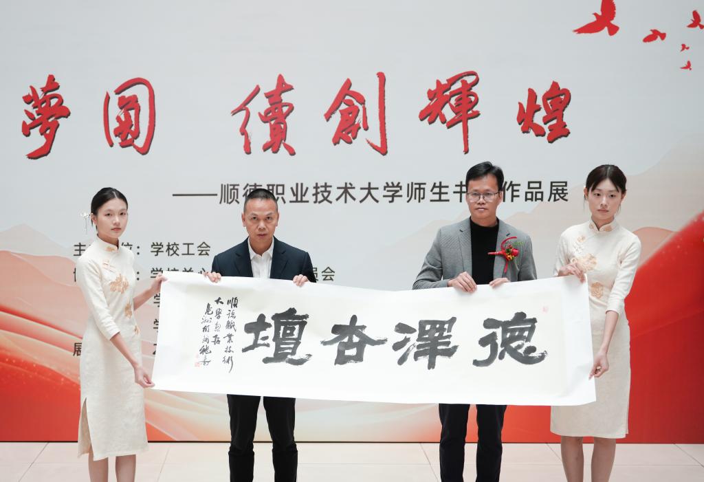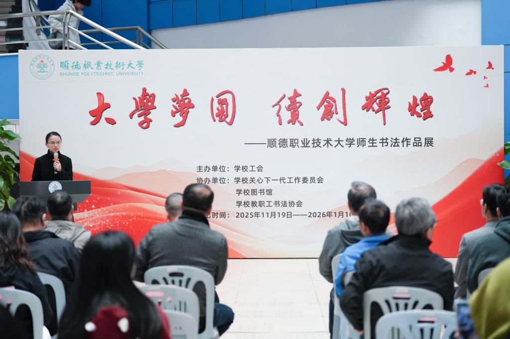 11月19日下午,由学校工会主办,关心下一代工作委员会、图书馆、教职工书法协会协办的“大学梦圆 续创辉煌”师生书法作品展在图书馆一楼开幕,展览将持续至2026年1月10日。