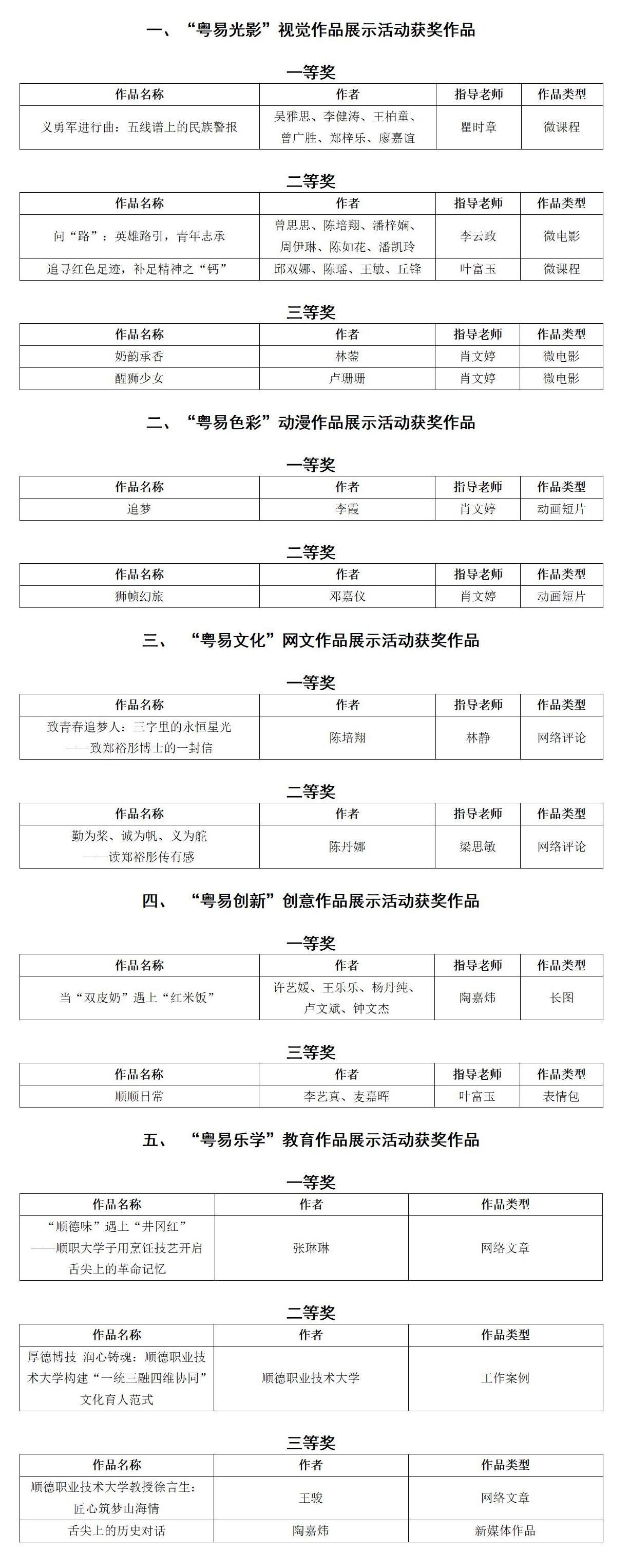 本届广东高校网络媒体展示节以“奋进强国新征程”为主题,设置5个项目,包括“粤易光影”视觉作品展示活动、“粤易色彩”动漫作品展示活动、“粤易文化”网文作品展示活动、“粤易创新”创意作品展示活动、“粤易乐学”教育作品展示活动,每个展示活动设多个子项目。