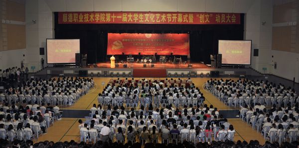 4月27日晚,永利官网第十一届大学生文化艺术节开幕式暨“创文”动员大会在梁銶琚堂顺利举办。顺德团区委书记柯宇威,中国移动集团顺德分公司大良服务销售中心总经理冉小容,永利官网领导谭谦章,党委宣传部、总务处、信息中心、学生处等相关部门负责人及2000多名师生出席了本次活动。