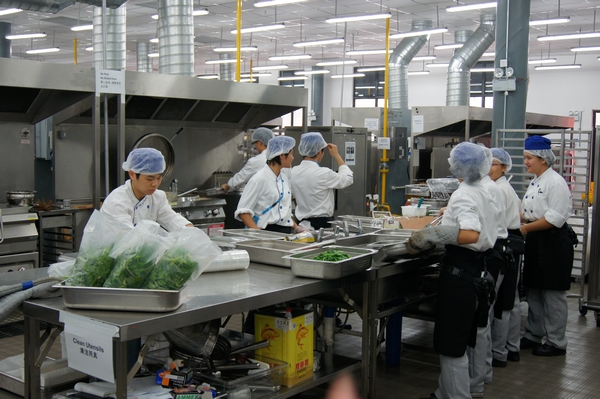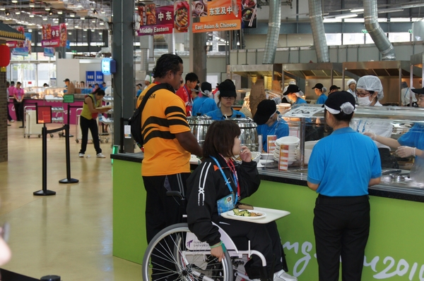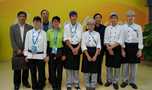 亚残会服务期间,学校领导罗勇武、陈粟宋、谭谦章、鼎瀛物业管理公司、财务处、学生处、设备处以及酒店及旅游管理系领导,在亚运会餐饮服务供应商——美国爱玛客服务产业中国有限公司人力资源总监奥利女士、运营总监塔玛拉女士的陪同下,亲切慰问了永利官网参加亚残会餐饮服务的师生,并参观和考察了亚运厨房和餐厅。