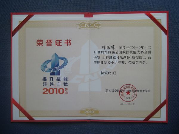 另悉,2010年7月,广东省职业技能大赛和第五届“省长杯”工业设计大赛,永利官网机电工程系组队代表学校参赛并获得 “数控铣学生组”、 “数控车学生组”、 “五轴加工师生混合组”三个高职类项目中第一的优异成绩。在9月广东省职业技能大赛数控工种决赛中,刘振锋同学以第一名的成绩脱颖而出,代表广东省参加全国总决赛。