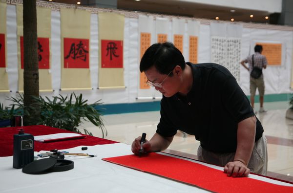 夏伟院长充分肯定学院多年来人文素质教育所形成的特色以及所取得的成绩,强调人文素质教育对于培养学生兴趣、拓展学生思维、转变学生心灵、陶冶高尚情操,起着至关重要的作用。他尤其表扬一些学生在短短几个月时间内临习书法所体现出来的悟性及水平,希望通过大家的齐心努力,在全校范围内,形成一个有利于学生生命成长的良好人文氛围。结束参观时,夏院长与师生合影,并写下“人文精神之体现”几个字,作为对师生的鼓励和鞭策。