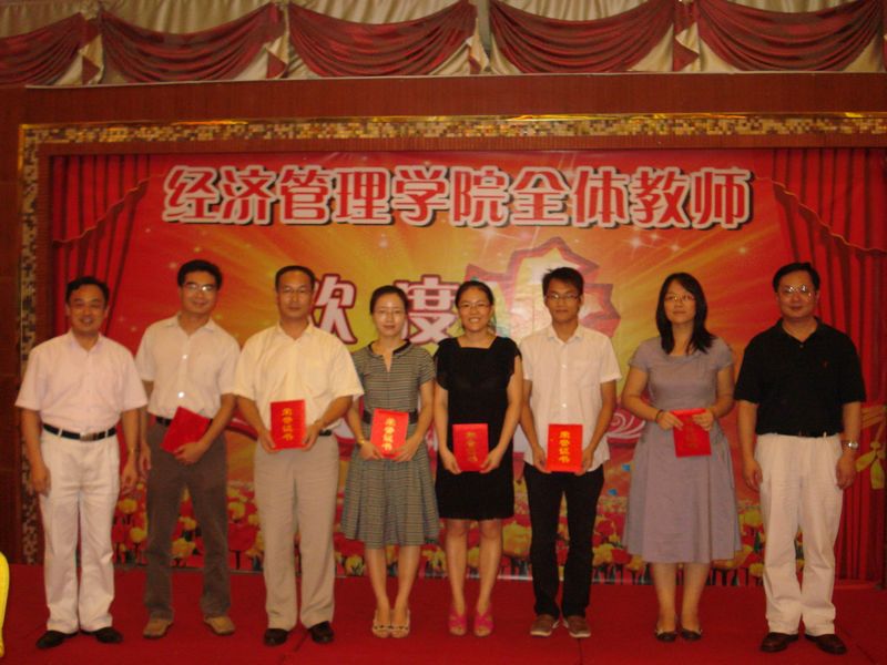 刘红书记向经管学院全体教师送上了节日的祝福,并宣读了《经管学院关于表彰2010年优秀教师、优秀教育工作者的决定》和《关于表彰在“我为经管学院献计献策”活动中获奖教师的决定》,夏伟院长和刘毓处长分别给获奖的老师们颁发了荣誉证书,希望受表彰的同志珍惜荣誉,再创佳绩。