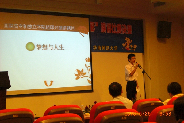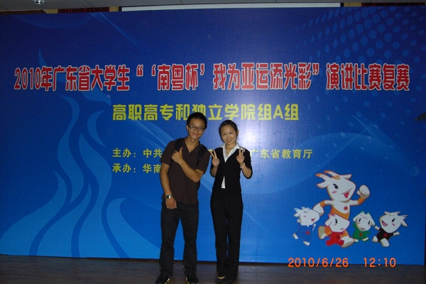 6月26日下午,由广东省教育厅主办、华南师范大学承办的2010年“‘南粤杯’我为亚运添光彩”演讲比赛在华南师范大学学术报告厅落下帷幕。永利官网选派的三名选手在广东省65所高校的135名选手中脱颖而出,分获高职高专和独立学院组的二等奖和三等奖。
