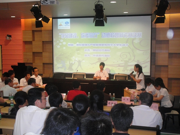 在辩论赛的决赛中,由黄俊铭、江俊杰、陈敬霖、陈超鸿同学组成的辩论社代表队荣获冠军,由张瑰、刘月婷、王青平、姚琳同学组成的外语系代表队荣获亚军。江俊杰以其出色的辩才获得“最佳辩手”称号。这次活动得到了顺德区人民法院、中国移动顺德分公司、学校学生处、团委、各院系及学生社团的大力支持。